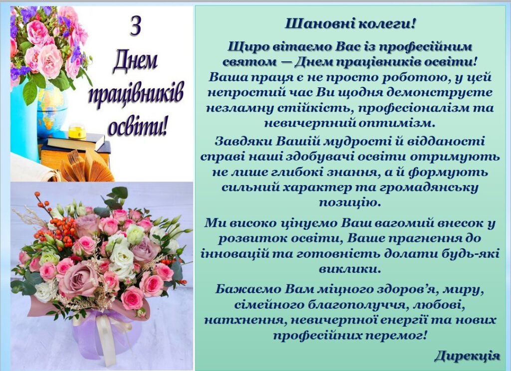 Шановні колеги! Вітаємо Вас з Днем працівників освіти!